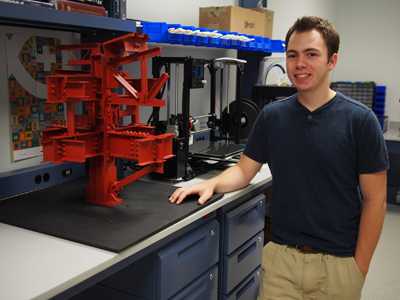 This 3D-printed steel sculpture, created by student Jeff Bynum (pictured left) and assistant professor David Lattanzi, is a smaller version of the AISC steel sculpture. It is scale accurate, with just a few minor modifications to help printing. (The AISC steel sculpture is a valuable teaching aid that exemplifies the many methods of steel framing and their corresponding connections; it can be found on more than 150 college campuses worldwide).