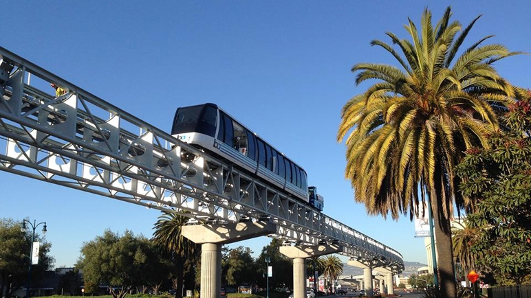 The recently opened BART to OAK connector is a 3.2-mile rail extension from the Coliseum/Oakland Airport BART Station to Oakland International Airport via an “automated guideway transit (AGT)” system. The cable-propelled system - comprised of more than 350 tons of structural steel supported by concrete columns over the highway’s northbound and southbound lanes - provides a seamless connection between BART and the airport with driverless trains that provide eight-minute trips and depart every four minutes.