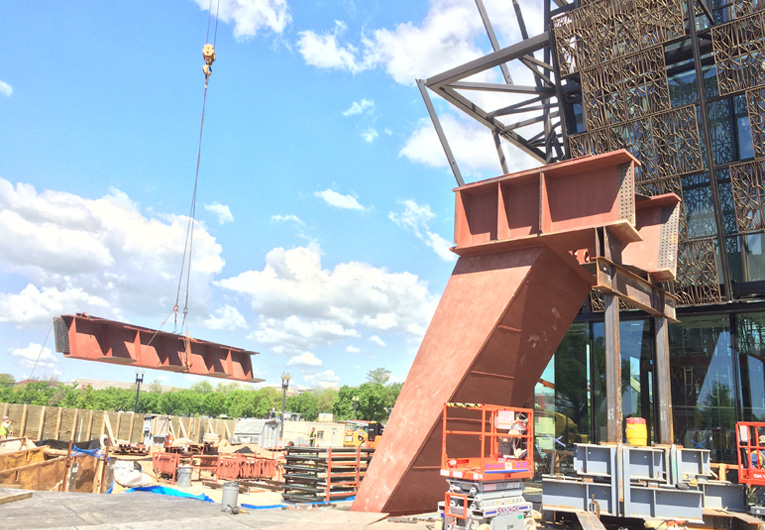 The Smithsonian National Museum of African American History and Culture (NMAAHC) is Washington, D.C.’s latest high-profile structural steel feature. Situated near the Washington Monument, the 400,000-sq.-ft project joins the monument as a centerpiece of the National Mall and will hold various ceremonies and performances, as well as a primary exhibition space for U.S. African American history and culture. It will also likely become the last Smithsonian Museum to be constructed on the Mall.