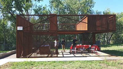 The project team of the Lamar Station Classroom for Urban Farming gathered at the outdoor classroom structure in Lakewood, Colo., on Friday to receive AISC's 2017 IDEAS2 Award for excellence in building design using structural steel. Designed by the University of Colorado Denver's ColoradoBuildingWorkshop (entering organization) with structural engineering by Structuralist, LLC, Ft. Collins, Colo., for owner Metro West Housing Solutions, Lakewood, Colo., the weathering steel structure is deceptively complex. (Photos: AISC)