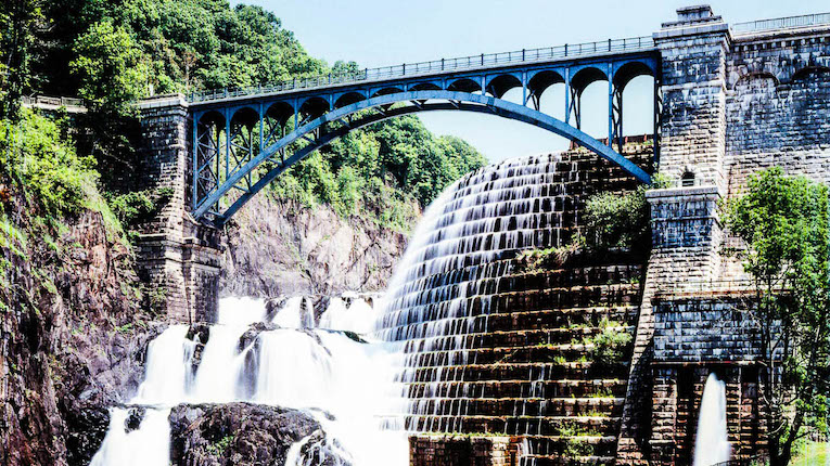 The historic New Croton Dam has been a key element of the New York City reservoir system since 1906. A new 200'-long steel arch bridge over the New Croton Dam spillway provides a focal point for this historic stone masonry dam.
