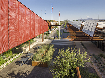 The IDEAS2award dates back more than 50 years with AISC. And about this year’s winning land port site, Roger E. Ferch, PE, president of AISC, said, “The entire Mariposa Land Port of Entry project team has shown how structural steel can be used to create structures that combine beauty and practicality. The result is a structure that serves its purpose extremely well, while providing an example of what can be achieved when designing and constructing projects with steel.”