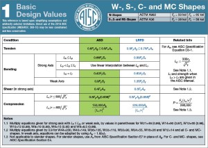 The Basic Design Value Cards are a design aid for the 2016 AISC Specification for Structural Steel Buildings (ANSI/AISC 360-16). These cards present some of the most frequently used equations from the Specification in a simplified and abbreviated format.